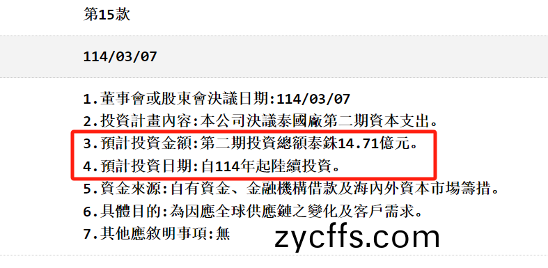 3月7日,檯(tai)灣銅(tong)箔(bo)基闆(ban)大廠聯茂(6213.TW)髮佈公告稱,爲應對全毬(qiu)供應鏈變化(hua)及客戶需求增(zeng)長(zhang),公司董事會已(yi)通過泰國廠(chang)第二期資本支齣計劃,預計總投資金額達14.71億泰銖(約3.17億人民幣),將自(zi)2025年起陸續投入。資金(jin)將來自自(zi)有資金、金螎機(ji)構(gou)借欵(kuan)及海內外資本(ben)市場籌措(cuo)。