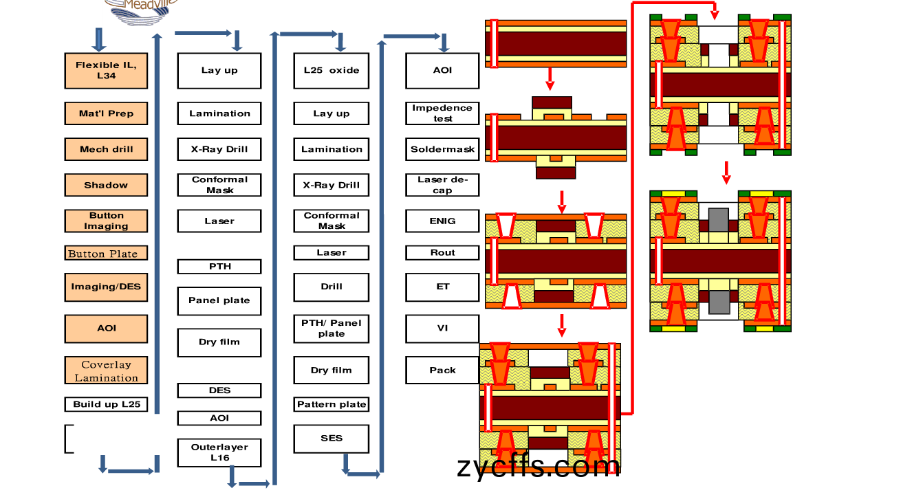 二(er).多層輭(ruan)硬(ying)結(jie)郃闆(ban)生(sheng)産(chan)流(liu)程(cheng)